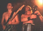SONNTAG Wenig Schlaf und die Tatsache, dass es zum Frühstück schon ein Bier sein muss, gehören ebenfalls zum Ambiente eines Metal-Festivals. Manchmal kann einem das schon auf die Füße fallen, aber das kommt dann später im Text... Den absolut schlechtesten Sound des Wochenendes bekamen ANGEL DUST. Einfach grauenhaft. Schlagzeug und Gesang waren das Einzige, was zu hören war. Es ist mir daher leider unmöglich, die musikalische Seite zu beurteilen. Nix zu merken von melodischen, progressiven und harten Einflüssen in den charakteristischen Sound (welchen?). Schmerzhaft, da mich gerade diese Band aufgrund der sehr guten Resonanzen der Presse auf das neue Album besonders interessiert hatte. Dem Soundmann gebührt ein kräftiger Tritt dahin, wo’s wirklich wehtut. Einer aufstrebenden Band eine so einmalige Chance dermaßen zu versauen! Lustig sollte es heute aber auch werden. Zunächst mit der inzwischen 16jährigen DDR-Kult-Combo MANOS. Ganze Bäume wanderten da, an die Klampfe gebunden, über die Bühne. Ziemlich originelle Show, und die Musik stimmte auch noch. Aber das war noch gar nichts gegen KNORKATOR (siehe nächstes Foto). Wer die noch nicht gesehen hat, hat definitiv was verpasst. Auch wer sie nur von ihrem Auftritt zum Vorausscheid des Grand Prix de la Chanson her kennt. Denn auf der Bühne sind sie noch tausendmal besser. Es war fast nicht zum Aushalten, wie die Bauchmuskeln vom Lachen strapaziert worden sind. Eine Slo-Mo-Variante von AC/DCs „Highway To Hell“ und ein lieblich zart dahingehauchtes „Haaaardcoooore...“ waren dabei nur der Anfang. Natürlich verkloppten und zerhackten sie wieder gnadenlos ihre Orgel, waren völlig schräg gekleidet und sich überhaupt nicht zu schade, sich total zum Löffel zu machen. Das faszinierende an dieser Band: So ganz „nebenbei“ sind das auch noch exzellente Musiker... Vor allem der Gesang verursachte ein ums andere Mal Gänsehaut. Beifall! Das war spitze!