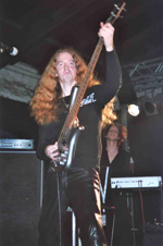 Dann wurde es aber Zeit für ein thrashiges Abrißkommando: Adorned Graves, die Band um die Gebrüder und langjährigen Metalgefährten Martin und Stefan Lang betraten die Bühne (als Intro mit einem auftretenden Sensenmann) und thrashten gnadenlos alles in Grund und Boden. Neben gelungenen eigenen Songs wie "Fightgrinder" konnte man sich bei Adorned Graves auch an einigen Coversongs erfreuen. So traten mit Sicherheit einigen Altmetallern Freudentränen in die Augen, als man das Intro von "Into The Abyss" von Vengeance Rising hörte, ebenso bei der lustigen Showeinlage mit aufgesetzten Perücken wegen langsam einsetzenden Haarausfalls, als es dann mit "If You Will" von Deliverance munter weiterging. Hätte auch nie gedacht, daß ich noch einmal in den Genuß eines The Lead-Songs ("The Empty Sepulchre" vom 1989er Album "Burn This Record") kommen würde, Nostalgie pur, danke Jungs!! Klasse Auftritt, nur der Bassist bewegte sich keinen Millimeter, dafür gab es reichlich Action von Martin und Stefan. Nun wird es aber langsam Zeit für eine CD, Jungs!! (dh)