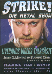 Mitte März fand in Speyer im coolen Lokal/Club Flaming Star, welcher direkt neben der Halle 101 liegt, die Aufzeichnung der Sendung "Strike" von und mit Andreas "Neudi" Neuderth (der bekanntlich inzwischen in seinem Olymp angekommen ist, da er bei Manilla Road der Drummer ist) mit Gästen von Kissin' Dynamite und Subsignal statt. Die wenigen Besucher hatten die Chance, all die peinlichen Schoten, die dann nachher rausgeschnitten werden, in den beiden Interviews live mitzuerleben, was sehr unterhaltsam und lustig war. Zudem wurden die dann später in der Sendung gezeigten Video-Clips auf einen großem Bildschirm gezeigt. Aber nicht nur das: Hannes Braun und Jim Müller von KISSIN' DYNAMITE spielten noch zwei Akustik-Songs und selbst Zaungäste, die die Band vorher nicht kannten (so wie meine Tischnachbarin) waren von der "kräftigen Stimme" von Hannes bei "Six Feet Under" begeistert. Eher verzichtbar war die Info, daß Neudi auf Adele steht - aber nicht wegen ihres Gesangs, sondern wegen ihrer Körperfülle! Auch die Sängerin von Battle Beast sagt ihm aus den gleichen Gründen zu, wie er dem Auditorium offenbarte.
