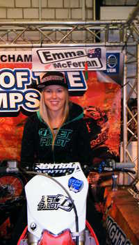 Nach einer Pause von einer halben Stunde (das erscheint recht lang, doch wenn man bedenkt, dass mal eben mehrere Hundert Menschen die Toilette aufsuchen, ist das durchaus verständlich) geht es dann weiter mit einem absoluten Highlight - einem Weltrekordversuch. Zum ersten Mal wird eine Frau vor Live-Publikum bei der Night Of The Jumps einen Backflip auf einem Motorrad vollführen. Wow - ein Weltrekordversuch. Da darf ich doch richtig was erwarten. Showeinlagen vorneweg und hinterher? Wenigstens drei Motorräder, die gleichzeitig parallel durch die Halle fahren und von deinen die Frau in der Mitte sich dann von der Gruppe abspaltet und als einzige publikumswirksam über eine von Feuerwerk entlang des Sprungs begleitete Rampe springt, einen Backflip vollführt, nach der Landung noch zwei Runden mit den anderen Motorrädern dreht und die Stimmung richtig ankurbelt? Ja bitte! Was man dann zu sehen bekommt, ist jedoch wieder ein wenig ernüchternd. Emma McFerran kommt in Begleitung guter Rock-Musik in die Halle gefahren und wird bejubelt, beklatscht und vom Moderator in den höchsten Tönen gelobt. Er erzählt kurz etwas über sie und dann nimmt sie Anlauf, springt einen Backflip, ein kleines Feuerwerk(chen) zündet und Emma steigt ab und lässt sich bejubeln. Nun folgen noch ein kurzer Plausch mit dem Moderator und eine kleine Dankesrede an das Publikum. Fertig. Klar, der Sport steht im Vordergrund und es ist und bleibt ein Weltrekord. Ich bin auch beeindruckt von dem, was die Frau schafft - aber es steckt so extrem viel Potential in dieser Show und ihrer Inszenierung. Es ist unglaublich, was hier verschenkt wird.