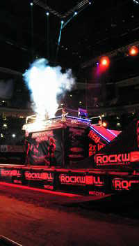 Nachdem sich nun alle so langsam aus der Boxengasse rausgezwängt haben, wie Tausende Sandkörner durch eine Uhr zu gerinnen pflegen, füllt sich die Halle. Dennoch wirkt die Tribüne relativ leer in der großen Halle. Es sind viele freie Flächen auf den Rängen zu beklagen. Zu Beginn der Show wird ein kleines Feuerwerk gezündet und verkündet den Start des verheißungsvollen Abends.