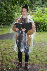 Schauspielstudierende der HMTM Hannover hatten sich entlang der Strecke postiert, um uns mit auf Spurensuche in der Abenteuerliteratur zu nehmen. Die Palette reichte von klassischen Werken von Jules Verne ("In 80 Tagen um die Welt"), Stanislav Lem sowie Alphonse Daudet bis hin zur lokalen Abenteuergeschichte aus dem nahe gelegenen Vernawahlshausen. Den Vorlesern gelang es dabei eindrücklich, die unterschiedlichen thematischen Bezüge lebendig werden zu lassen, so dass man sofort in die Welt der Autoren eintauchen konnte.