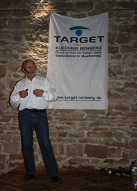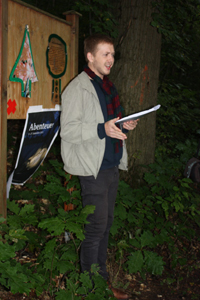 Am Ziel angekommen stärkten sich alle erst einmal mit Stockbrot und Bratwurst vom Grill, bevor mit Rüdiger Nehbergs Vortrag "Abenteuer mit Sinn" der Höhepunkt der literarischen Schnitzeljagd folgen sollte. Nehberg ist ein wahrer Survival-Gigant, der auch mit 80 Jahren so viel Dynamik und Leidenschaft für Mensch und Natur in sich trägt wie kaum ein anderer. Mit seiner unverkennbar selbstironischen Art trug er autobiographische Anekdoten vor, angefangen vom Klettern in der heimischen Konditorstube bis hin zur Atlantiküberquerung mit seinem selbst gebauten Floß, selbstverständlich inkl. äußerst bedrohlicher Lebenslagen. Sein Kampf für die Yanomami-Indianer im brasilianischen Urwald gehört ebenso zu seinen bleibenden Errungenschaften wie das jüngste Engagement mit der Organisation TARGET gegen die Frauenverstümmelung in der islamischen Welt. Nehberg ist alles andere als der typisch gutmenschliche Weltverbesserer und Menschenrechtsaktivist. Er ist ein Mann der Tat und des kompromisslosen Handelns und damit Vorbild für uns alle. Er ist zudem der Inbegriff des unkaputtbaren Überlebenskünstlers, der selber Grenzen überschreitet, damit andere ihre Grenzen erkennen. Mit diesen Eindrücken gingen wir bewegt und beeindruckt nach Hause.